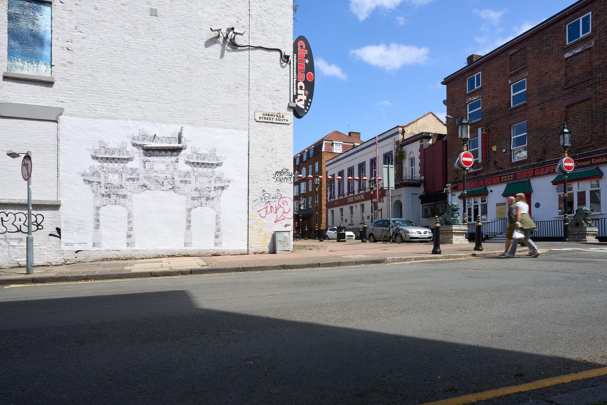 ChihChung Chang’s works combine multiple forms of media with skilled craftsmanship to explore the connections (universal experiences) and differences (tensions and grey areas) between humans and nature. He references rapidly changing and evolving environments such as ships, islands, water and ports to question how civilisation and our surroundings constantly shape one another. This temporary, collaborative artwork is the result of a series of workshops with local residents, organised in collaboration with Pagoda Arts, in which participants utilised personal objects as prompts to share their individual stories and connections to Liverpool. This work continues the artist’s ongoing project exploring material archaeology of memory worldwide, which explores how collective environmental memory is shaped through historical, cultural, and site-specific engagement. Focusing this time on Liverpool – the site of Europe’s earliest Chinatown and one of the first Chinese-speaking communities established nearly two centuries ago—the artist adopts the gaze of an outsider. From this perspective, the work reflects on the turbulent fate of Chinese-speaking immigrants during WWII and the lingering illusions tied to international politics and trade, symbolized by the Chinese Arch. The title responds to the theme of Liverpool Biennial 2025, drawing on the metaphor of an ‘architectural keystone’ – the last stone placed during construction which plays a crucial structural role by locking all other stones into position. It references the many different layers,both physical and symbolic, which have been added over time to construct the grandeur and fragility of this immigration port city. The final work is a mural which reflects the shape of Liverpool’s Imperial Arch – standing at 44 foot tall, it is the largest Chinese arch outside of China and details over 200 dragons. The arch was a gift from Shanghai to celebrate the twinning of the cities 25 years ago. The mural comprises images, text, signatures and charcoal rubbings contributed from local people, combined with the artist’s own rubbings taken from across the city. A video documenting the process of creating this work can be seen as part of an exhibition at Pine Court, 2 minutes’ walk along Nelson St towards the arch. Courtesy of the artist. Commissioned by Liverpool Biennial, with support from Ministry of Culture, Taiwan, and Mondriaan Fund. With thanks to Pagoda Arts.