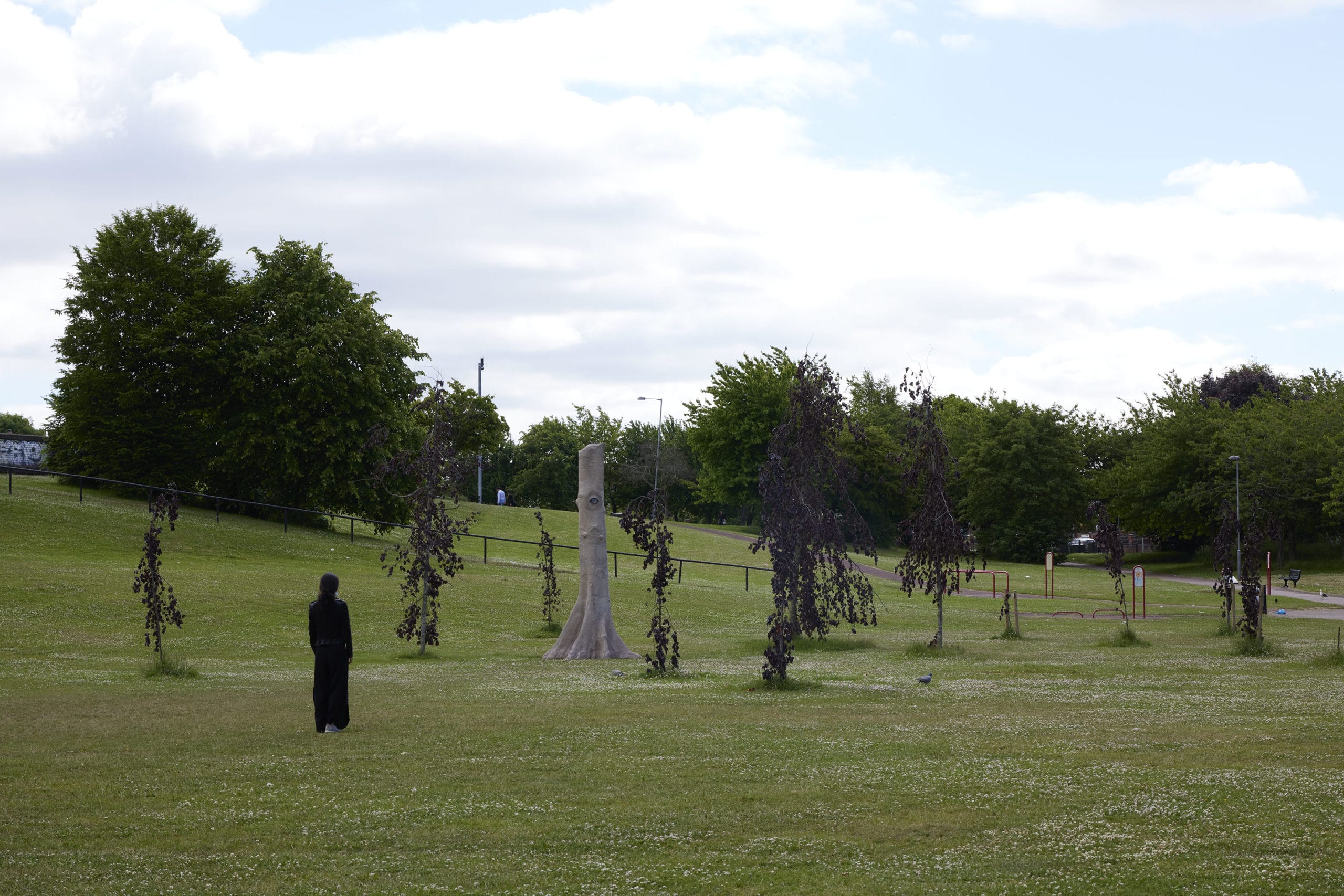Daniel Steegmann Mangrané presented a newly commissioned outdoor installation at Crown Street Park, and a film at Bluecoat. Steegmann Mangrané’s new outdoor installation, ‘La Pensée Férale’ (2021), brings into question our position in the world – eroding the Western conceptions of being that separate the world into opposing dualisms, for example, nature and culture. The tree trunk at its centre is a scanned replica of a Pau Rei, a native tree of the Brazilian Mata Atlántica, imbedded with the eye of an Indian pariah dog from Bangladesh. Surrounded by a newly planted forest of black beeches, the work raises questions about subjectivity and our attitude towards our environment, reinforcing that nature is not without perception or feeling.