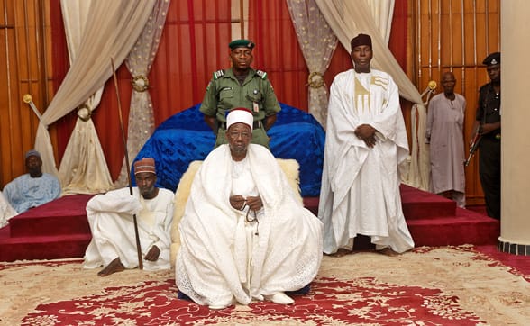 Nigerian Monarchs is a series of photographs that depicts the regional rulers in George Osodi’s home country of Nigeria. On display at Open Eye Gallery, the images conveyed the different personalities of the rulers as well as the extravagant regalia that now stand as symbols of lost power: their role has been largely relegated to a ceremonial one with no constitutional powers. Celebrating the ethnic diversity and cultural complexity of Nigeria, the portraits also reference Europe’s colonialist past: some of the rulers’ ancestors were kings during times of slavery. Osodi hopes to redress their inaccurate depiction during the early days of colonialism by portraying the rulers in the stately and dignified manner that befits them.