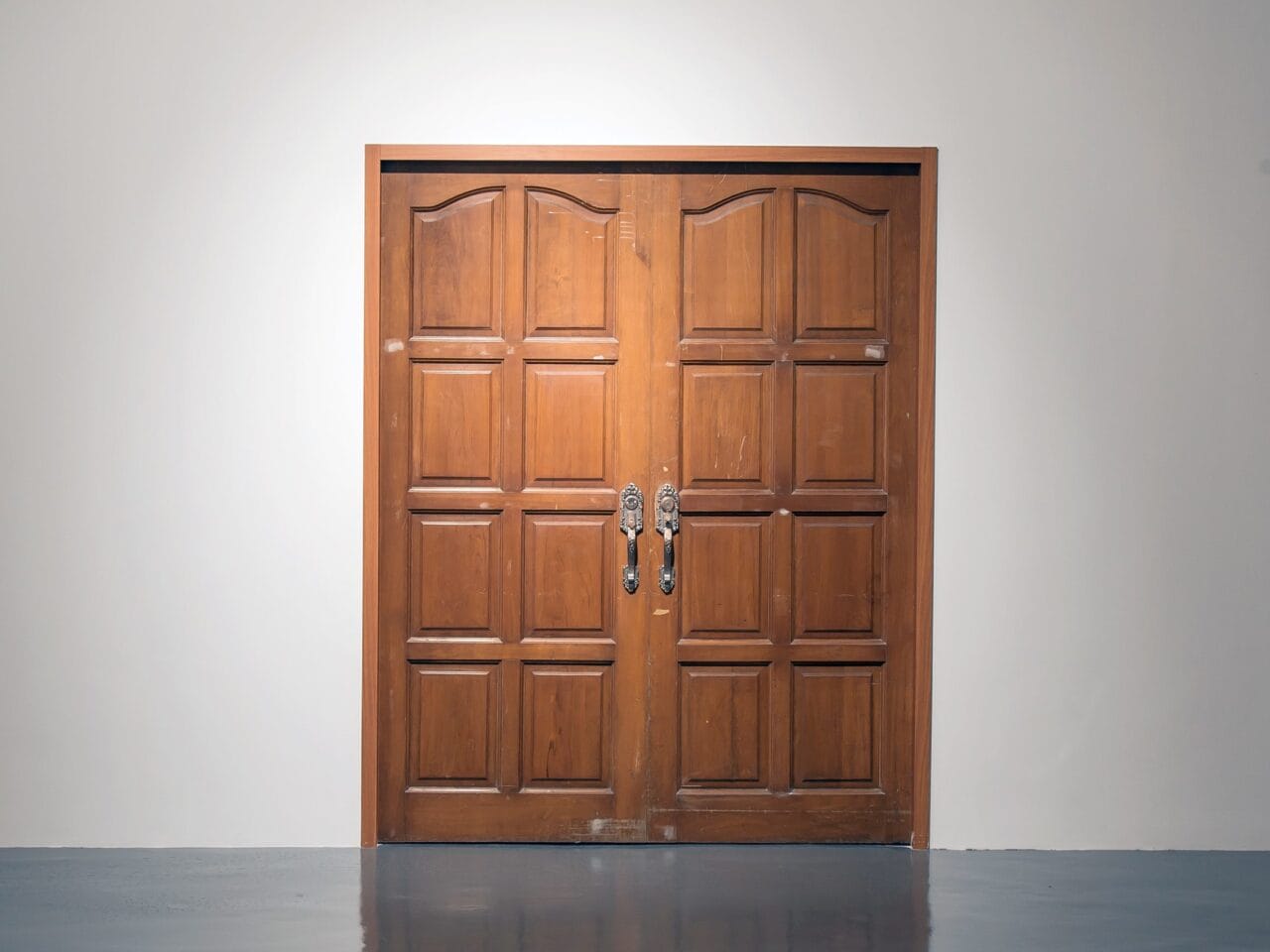 Wooden door and metal door handle