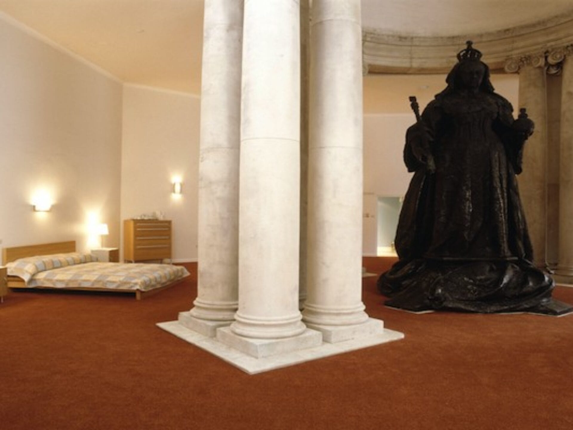 Bashi transforms an archetypal public monument into an artwork, an event, and a meeting place complete with comfortable accommodation for travellers, albeit in an unusual setting. Together, the hotel, the guests and the sculpture of Queen Victoria symbolised travel, mobility, trade and community. The artist reflected: ‘In a hotel there are always lots of people from all over the world. This character of a hotel is quite similar to the character of a big seaport like Liverpool and therefore reflects an important aspect of the city’s history and identity.’