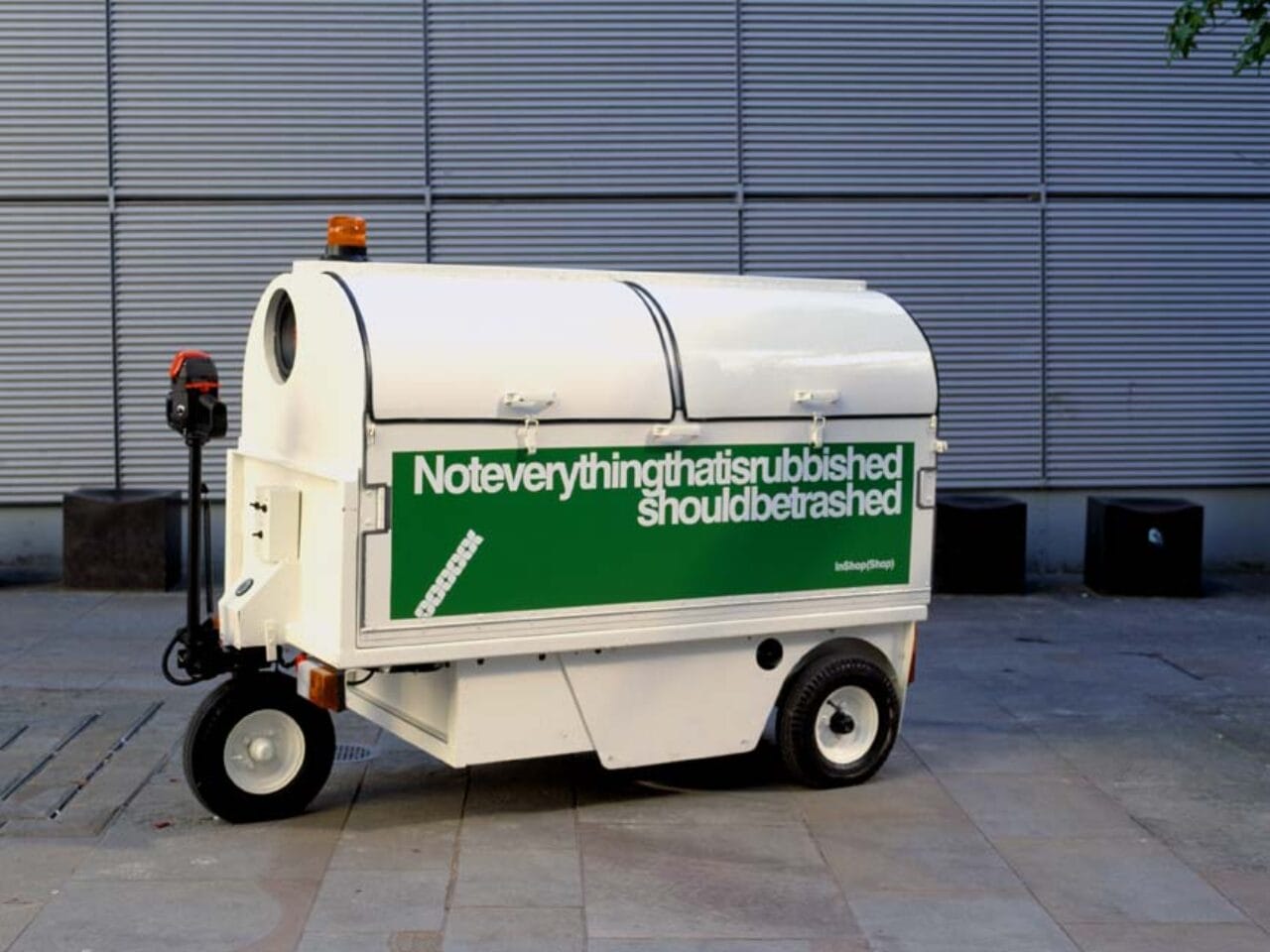 The rubbish collection vehicle, usually operated by street cleaners employed by Liverpool City Council, was re-engineered and re-fitted into a moving shop. The artists drove it and instead of picking up litter in the streets, they sold their own manufactured clothing line and other items selected by Torolab collaborators. This parasitic action exposed some of the processes and strategies involved in Torolab’s ways of working. The In-Shop (Shop) (2004) made use of one functional design, converted and applied it to a different purpose. Implicitly the message remained clear: please keep the streets clean. In the meantime, trust the parasite to do its job.