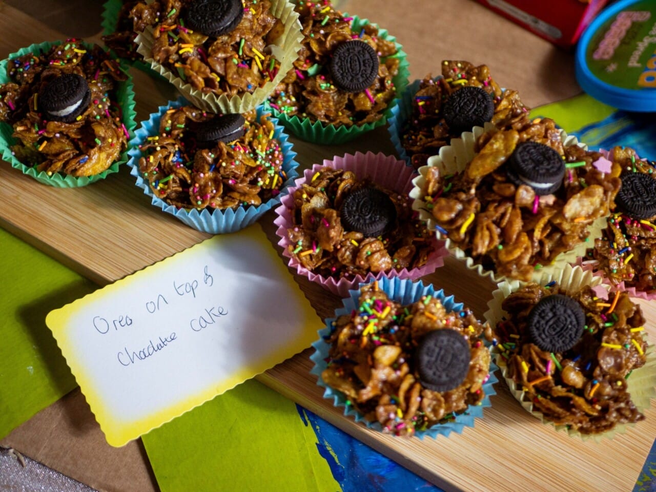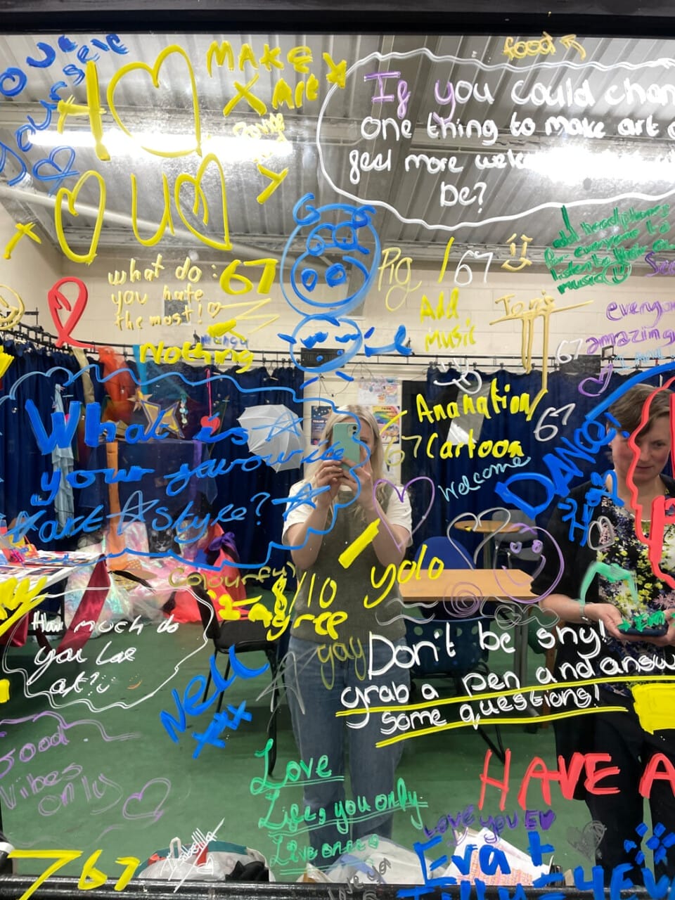 To mark the last session the group invited their friends and other members of MYA SPACE for a celebration event – featuring (amongst other things) chocolate crispy cakes, a large portion of salt and pepper chips, a cake making station, a tote bag making area and a wall of inspiration that the young people could write their own messages on.